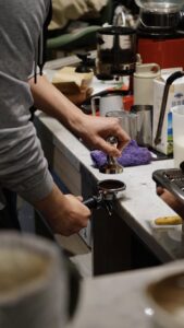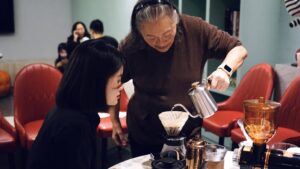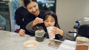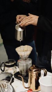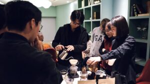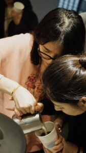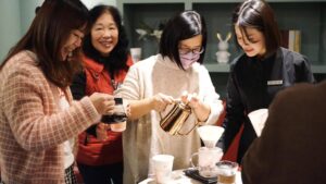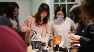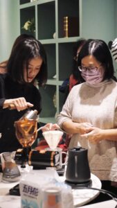 當天老師用心準備了講義一步一步讓我們了解咖啡的習性與沖煮步驟。溫柔細心的帶著每一位住戶體驗完整的過程,從手沖的柔情注水到拉花的細膩勾勒,每一步都是與咖啡的深情交流。一粒粒咖啡豆經過研磨與沖煮,散發出的濃郁香氣讓整個社區都瀰漫著放鬆的氣息。