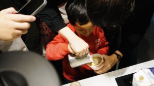 看著每一位住戶沖泡出屬於自己獨特風味的咖啡時滿意的表情並分享給身旁的鄰居,開始聊起自己喜歡的味道和泡咖啡的經驗;在拉花成功拉出愛心的那瞬間掩不住的興奮,拿起相機來紀錄下這完美的作品。那和諧有愛的畫面深深打動著我們,或許一直以來堅持做這樣不求回報的活動,就是想創造出屬於像這樣的元啟社區樣貌,每一位住戶都因為我們舉辦的活動而開始熱絡,能像朋友一樣聊天且關心著彼此。