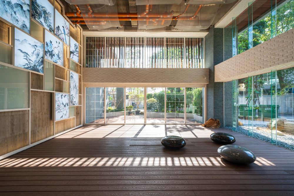 以建築為畫布,室內空間如美術館般純粹,將牆面留給畫作,大師親臨現場作畫,山水渲染整個社區,墨韻流轉,陶冶薰心。